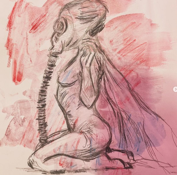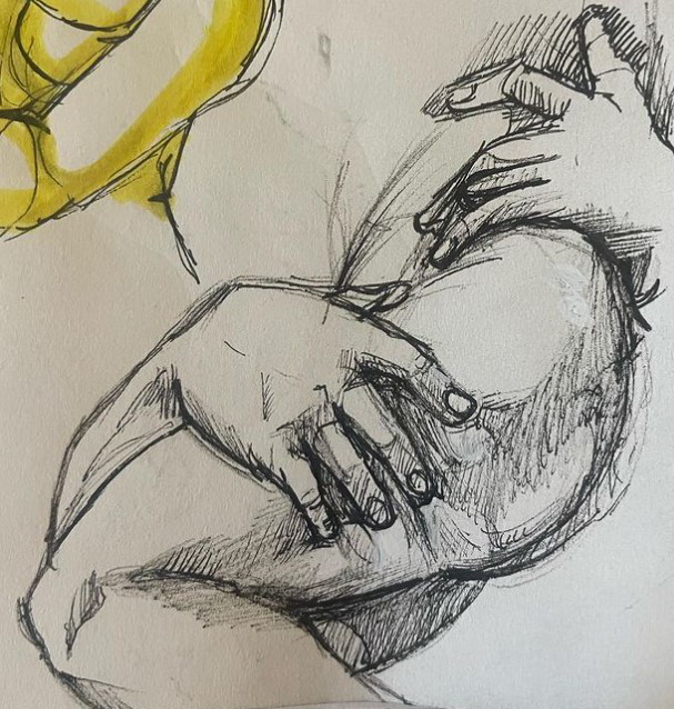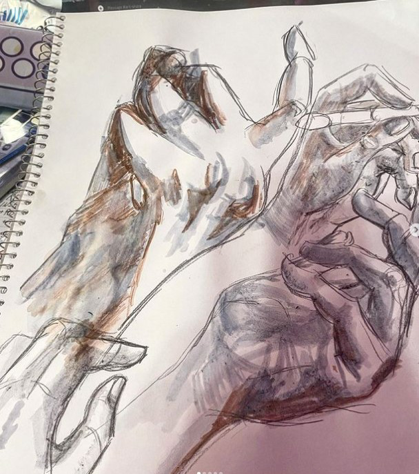 More studies, some dappled with watercolour to give more texture and suggestion of light. I feel it adds to the look of a body having mass.