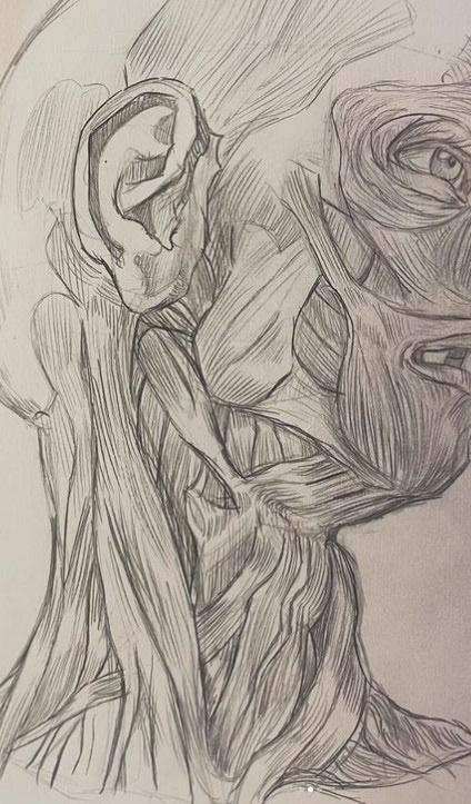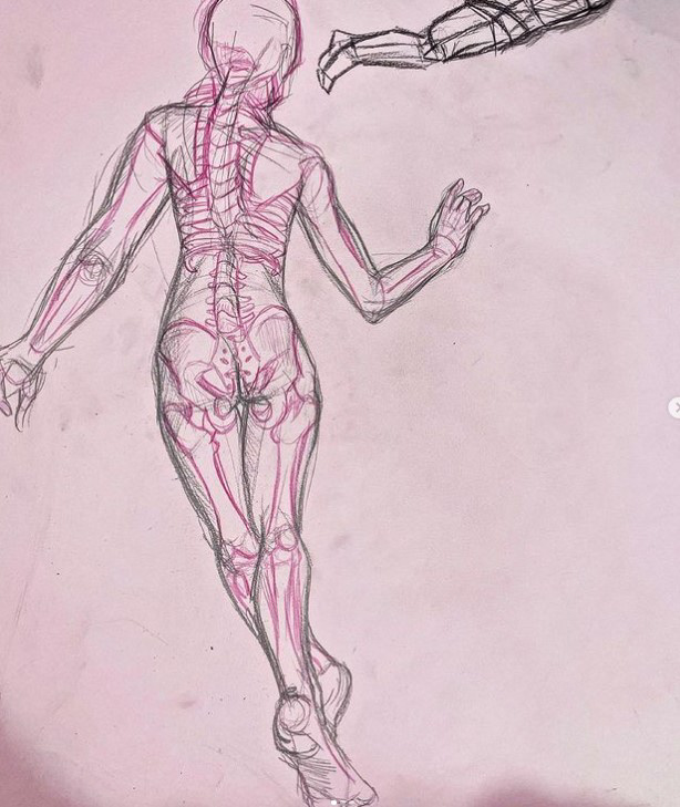 Experimental linework in order to capture very slight movement and the energy of the model, done in class.