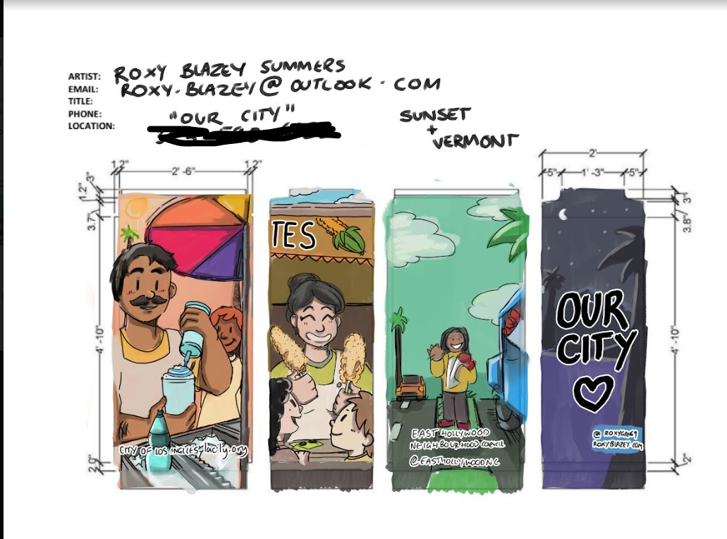 I submitted a design for a utility box project set up by the East Hollywood Neighborhood Council and was chosen to bring it to life.